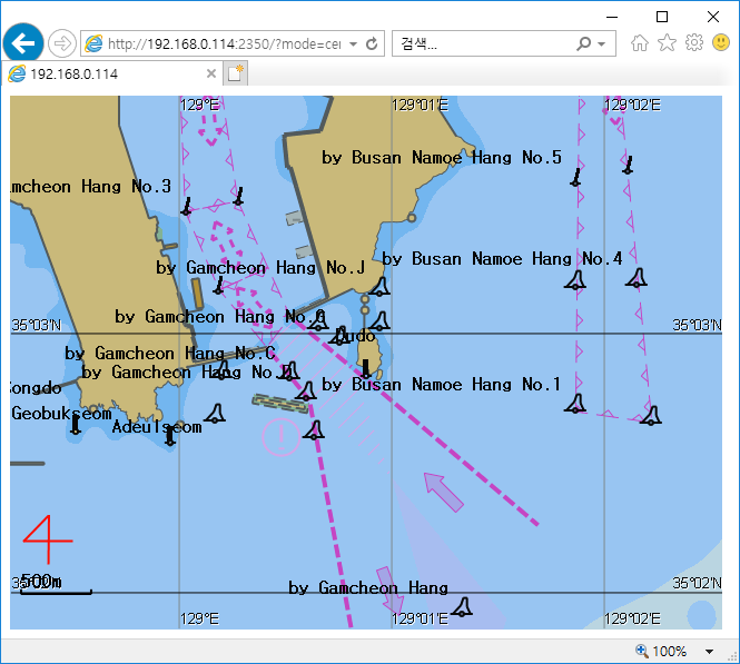 http://192.168.0.114:2350/?mode=center&lon=129.014695&lat=35.048158&width=640&height=480&scale=200000&dispcat=0&grid=0&shallow=0